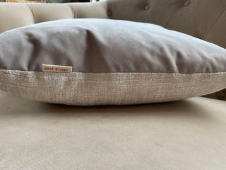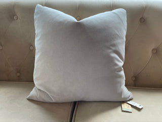 Made in house with designer-selected fabric. This gorgeous velvet is such an intriguing color: Silvery Gray in some light, while casting a very muted dusty lavender in others.