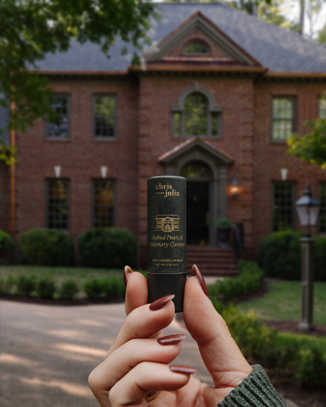 Limited edition gift set collaboration with blogger and online interior designer Julia Marcum of Chris Loves Julia. The perfect stocking stuffers for homebodies. This lip balm gift set features 3 lip balms with flavors inspired by where you live: Blackberry Campfire S'mores, Spiced Peach Crumble, and Baked Pears & Rosemary Caramel. It also includes custom matching recipes cards from Chris Cooks, making this the perfect house warming gift or realtor gift!