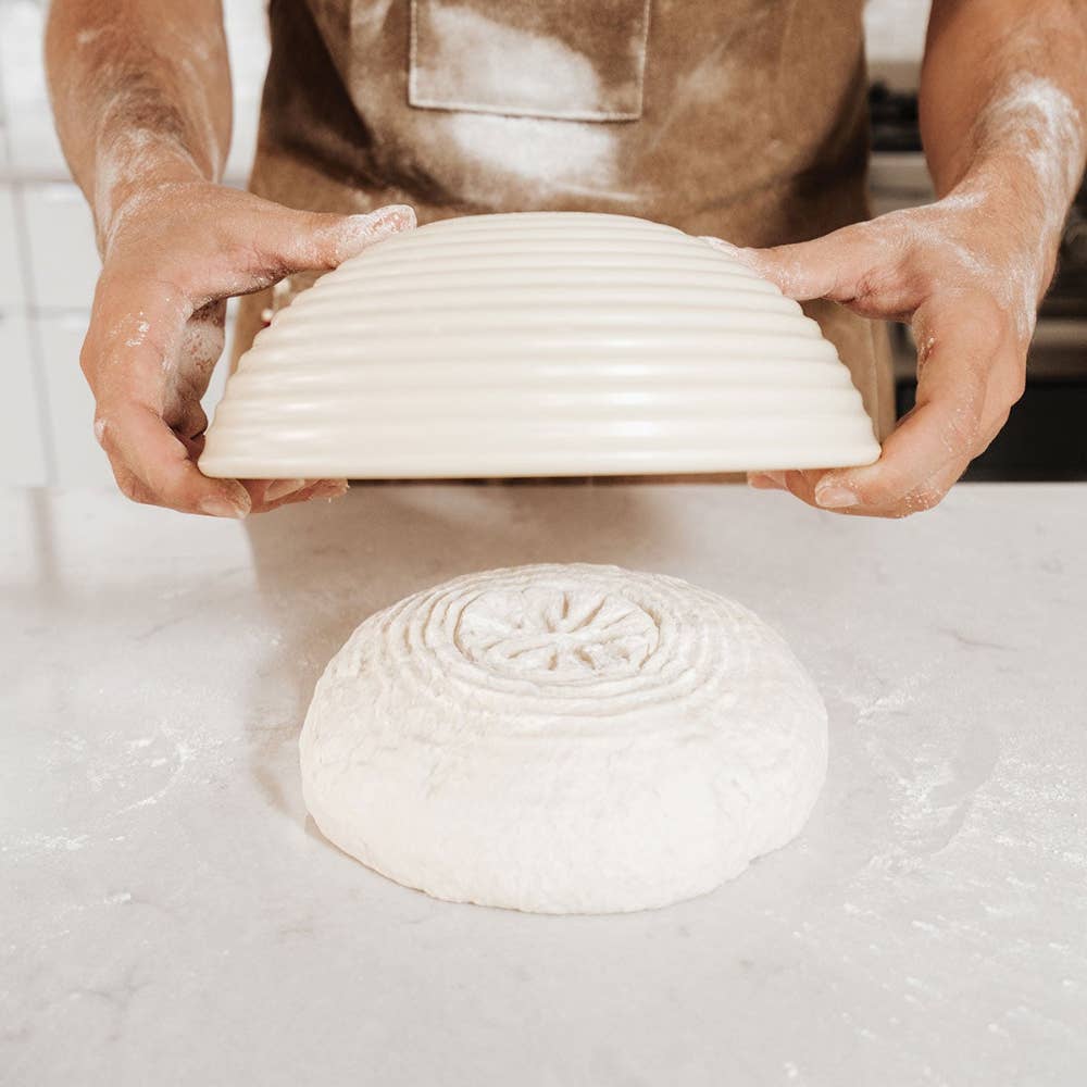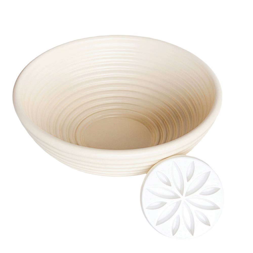 Proofing Basket & Embosser – Create Perfect Artisan Bread Every Time Easily proof and shape artisanal bread with our Proofing Basket & Embosser. Unlike traditional Banneton or Brotform baskets, this innovative basket is dishwasher safe, preventing bacteria buildup and making cleanup a breeze. The removable embosser adds a beautiful, professional design to the top of your bread, giving every loaf a stunning artisan finish. The multi-use plastic bowl is ideal for proofing, prepping, or even serving, while its shape helps retain warmth for optimal dough rise. For a classic artisan look, simply oil and flour the inside to create delicate, floured rings. Crafted from durable, BPA-free plastic, this basket makes homemade bread-making effortless, hygienic, and fun. Perfect for beginners and seasoned bakers alike!