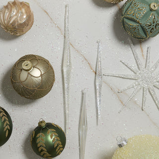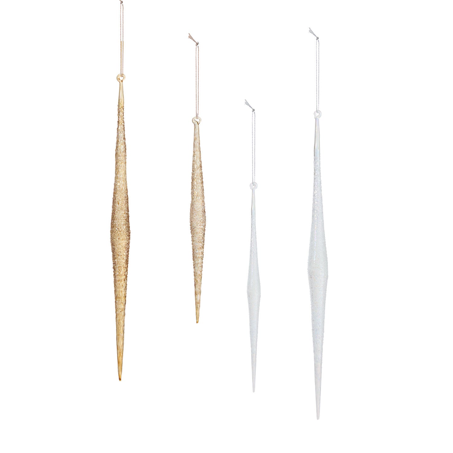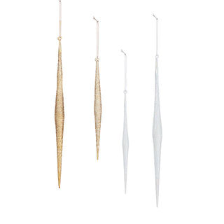 Glass sparkle icicle ornamentColor: ClearSmall size: 0.5"W x 7.5"LLarge size: 0.75"W x 11.5"L